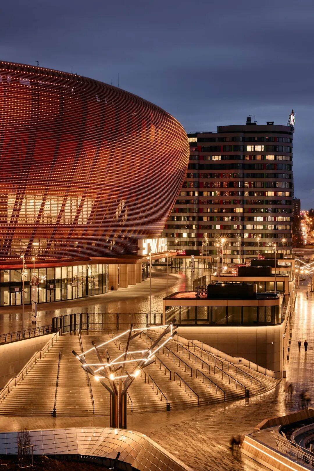 位于叶卡捷琳堡的地标性场馆——UMMC体育馆,坐落于伊塞特河河畔,可容纳15000名观众。本次照明设计的目标是为城市打造全新照明地标,重塑该场地在城市空间内的核心价值。