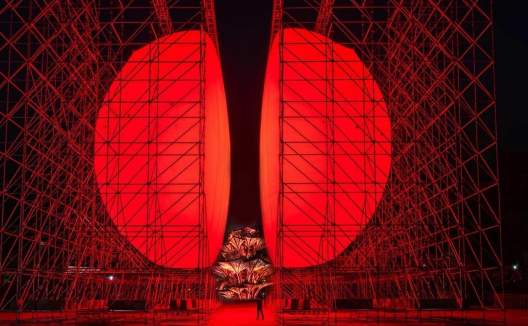 “初生”篇章的核心表达是红色光效,照明设计上采用单色聚焦照明技术,通过点光源的集中投射,形成极具视觉冲击力的红色光球意象。选择红色光效是为了贴合“生命原点”的热烈与纯粹,也利用了单色光在情感传递上的直接性——无需复杂色彩叠加,仅通过光的浓度与聚焦度,便构建出“混沌初开”的原始氛围。设计思路上的巧思体现了照明行业“少即是多”的核心逻辑:在特定主题表达中,精准的光色选择与投射方式,能比多元光效更高效地传递核心情感,为整个光影序列奠定纯粹的基调。