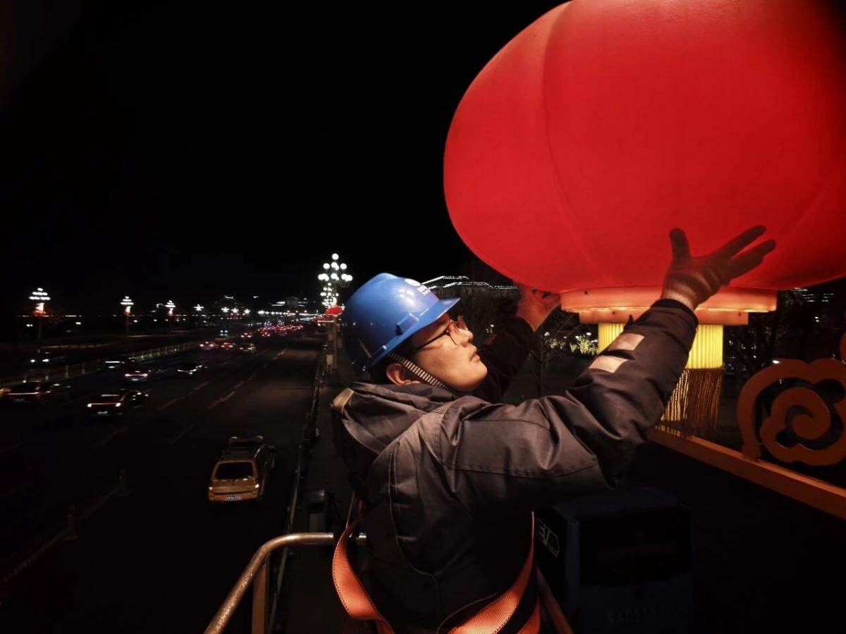 长安街及其沿线灯笼灯饰在2月6日进入“春节模式”,马年新春到!处处真热闹!
